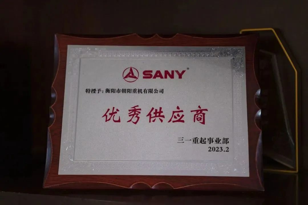 2023年2月,朝陽榮獲三一重起事業(yè)部頒發(fā)的“優(yōu)秀供應商”獎牌。這不僅是對朝陽技術研發(fā)能力的認可,更是對朝陽作為合作伙伴的絕對信任。朝陽將秉承“嚴格工藝操作,確保產(chǎn)品質量”的原則,始終保持技術生產(chǎn)水平,為三一供應優(yōu)質的高密度配重塊。