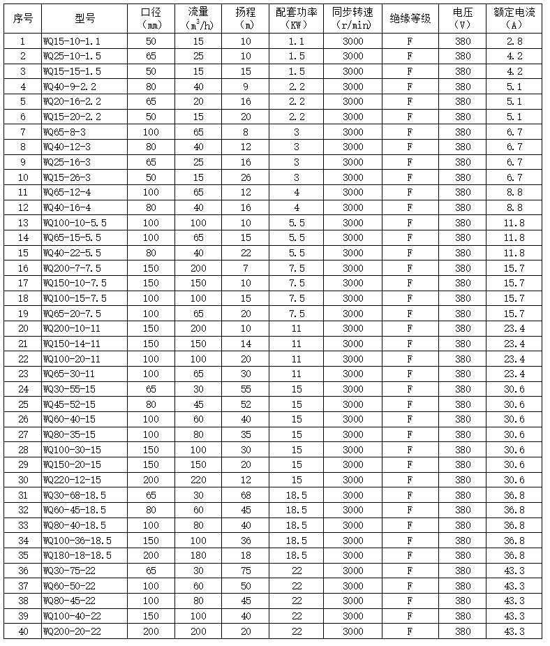 新一代WQ型污水泵除了具有無(wú)堵塞、防纏繞、節(jié)能效果優(yōu)良等特點(diǎn)外,公司自創(chuàng)的高精度泵體,雙流道的葉輪流道設(shè)計(jì),大幅度提高流道通過(guò)性能,在使用過(guò)程中,效率高,功率曲線平坦,不易過(guò)載。
